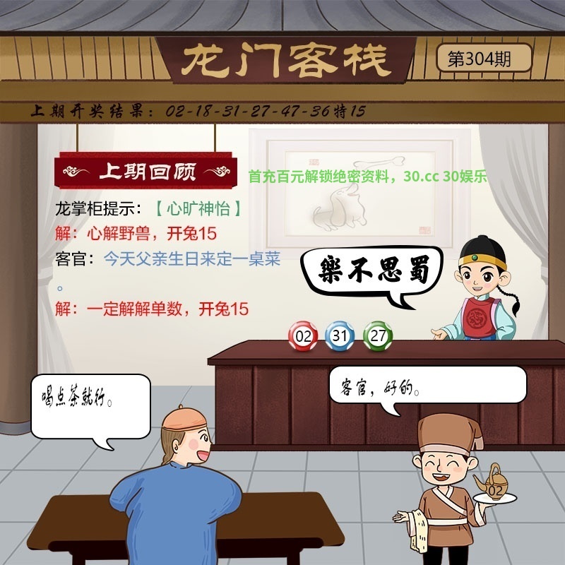 第304期掌柜:樂不思蜀 解:比喻乐而忘返或乐而忘本留恋他乡。 小二:客官,好的。 解:无。 客官:喝点茶就行。 解:喝点茶就行解水肖的生肖鼠、生肖猪。 推荐九肖:马虎牛鼠羊龙狗猴蛇 推荐六肖:马虎牛鼠羊龙 推荐三肖:马虎牛 |